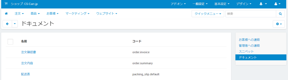 | プレビュー | ドキュメントを生成してポップアップウィンドウに表示します。ショップに注文データが存在しないとデータは表示されません。 |