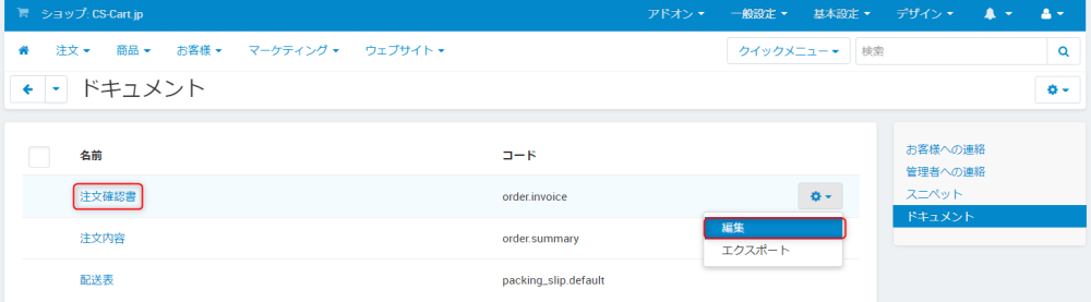 請求書、注文内容、配送表などのドキュメントのレイアウトを編集できます。