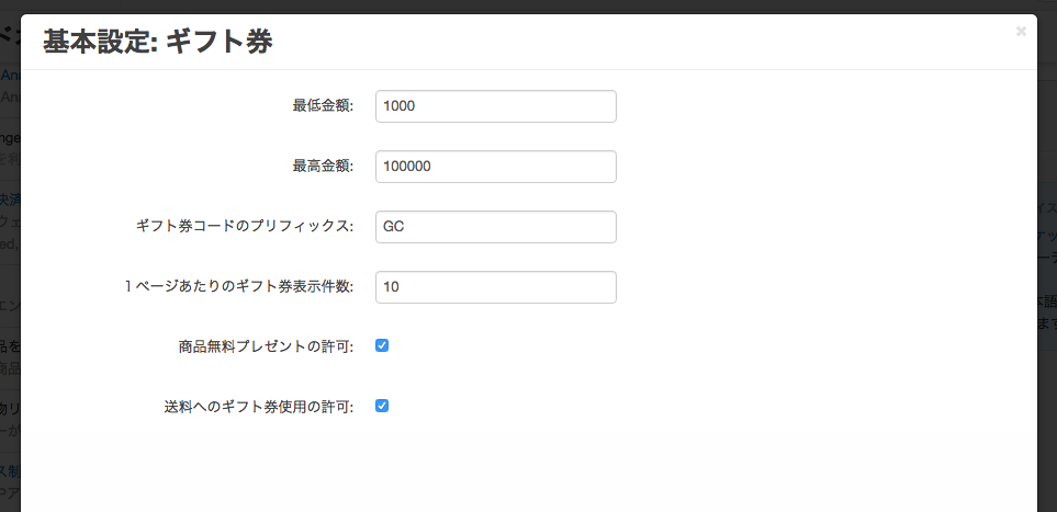 | 送料へのギフト券使用の許可 | チェックすることで送料へのギフト券の使用が可能となります。 |