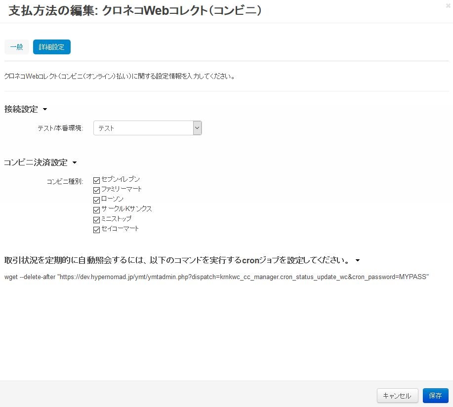 | 表示されているコマンドをcronジョブとして登録することにより、クロネコWebコレクトで決済した注文の取引状況を定期的に自動照会し、CS-Cartに反映することができます。(コマンドはカード払い・コンビニ払い共通) |