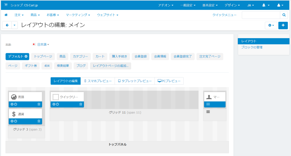 グリッドを利用して、各画面のレイアウトを変更することができます。
