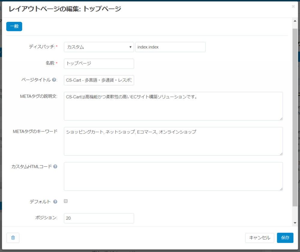 また、タイトルやMETAタグの説明文、キーワードもここで設定します。
