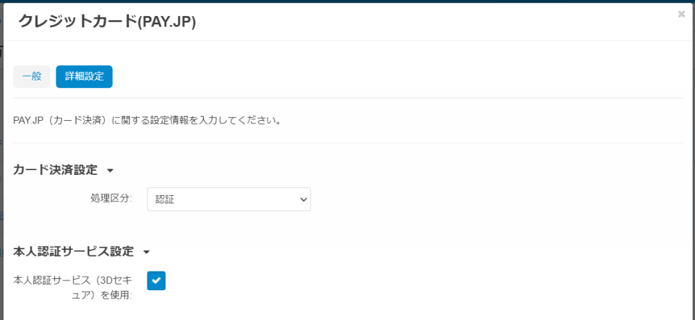 | 秘密鍵 | PAY.JP 決済様より発行された秘密鍵を入力してください。 |