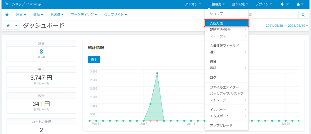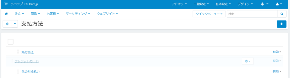 CS-Cartで利用できる国内向け決済代行サービスは、ほとんどがアドオン形式で搭載されています。