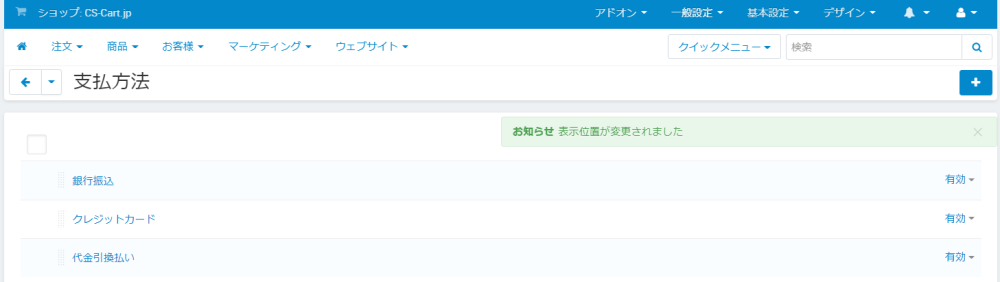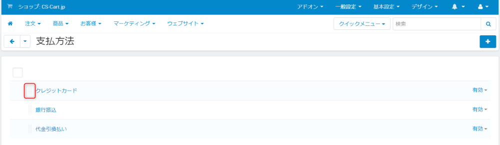 支払方法の表示順は、ドラッグアンドドロップで変更できます。