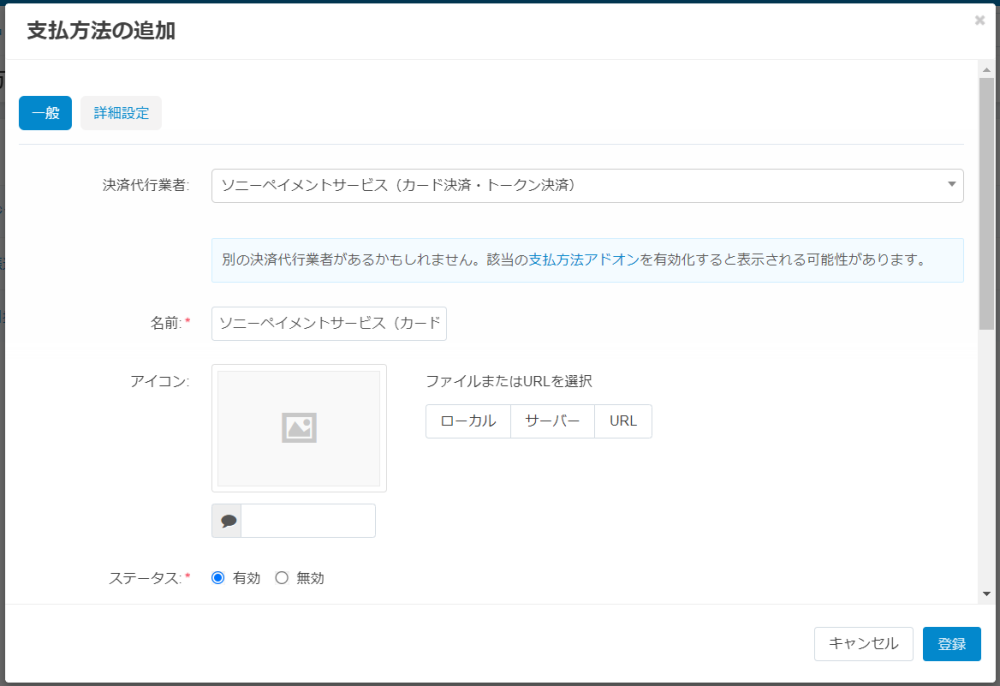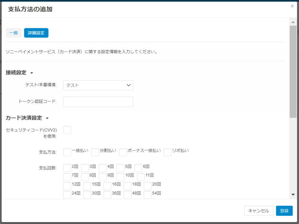 決済代行サービスを利用する場合には「詳細設定」タブが表示されることがあります。