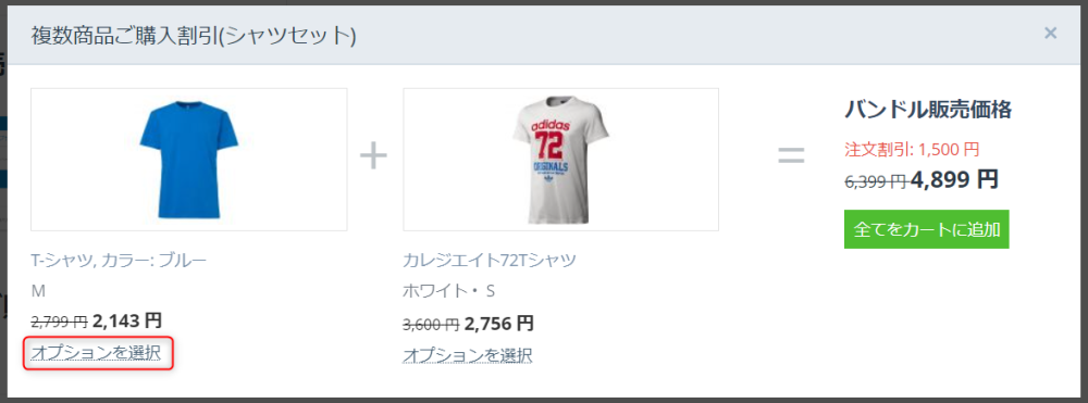 - お客様が個別にカートに商品を追加した場合でも、バンドル販売の商品の組み合わせであれば割引は適用されます。