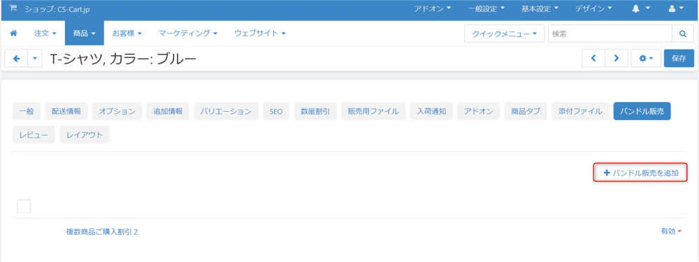 - アドオン → アドオンの管理 から 「バンドル販売」をインストールします。