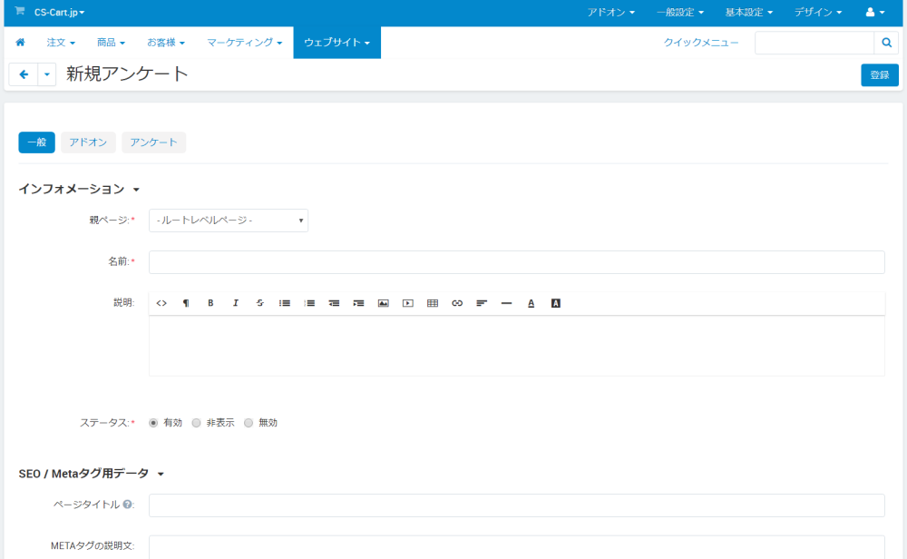 ここで「登録」ボタンをクリックして一旦ページを登録します。