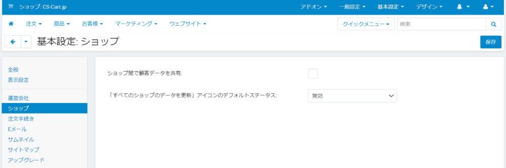 このチェックをONにすると、作成したショップ間で顧客データを共有することができます。
