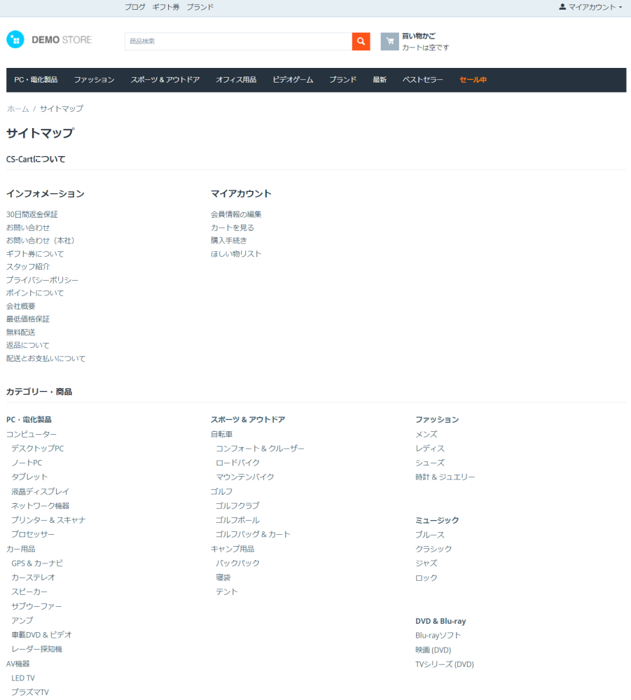 CS-Cartではサイトマップは自動生成され、次のURLから参照できます。
