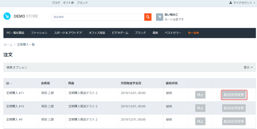 定期購入初回注文後、お客様側で住所を変更したい場合、