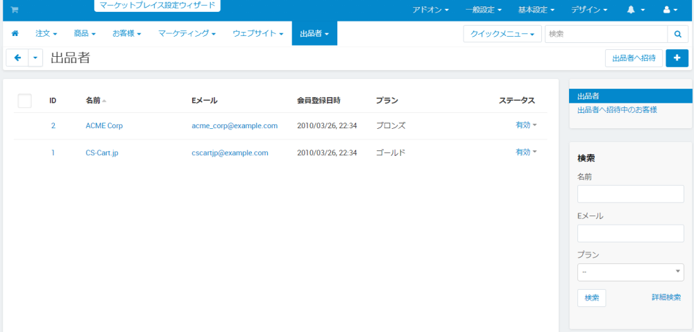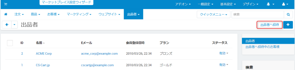 マーケットプレイスへの出品者の管理を行います。