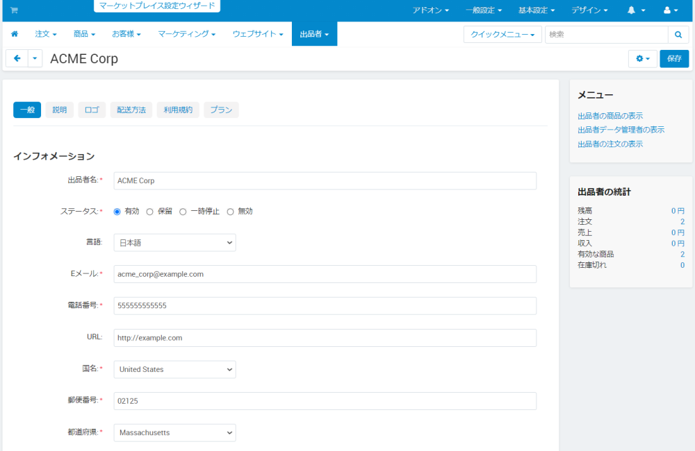 出品者一覧から編集リンクをクリックすると、出品者情報を編集できます。
