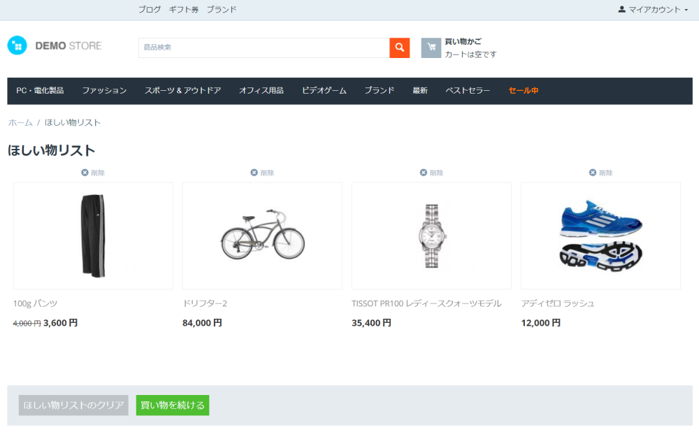 お客様はショップ内の任意の商品を「ほしい物リスト」 に登録できるようになります。