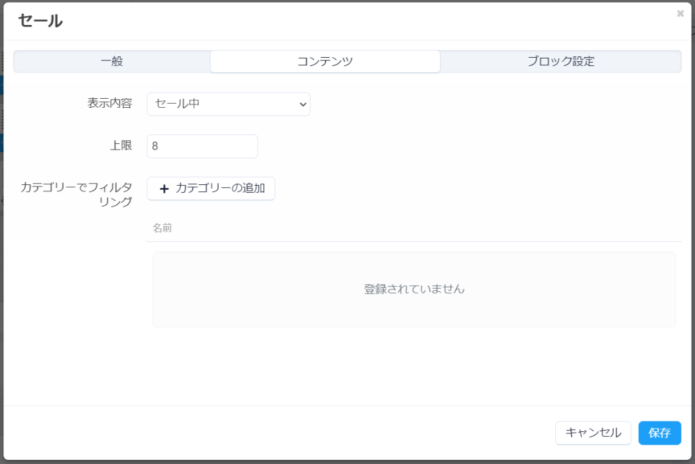 商品リストブロックの表示形式にセール中を選択できるようになります。