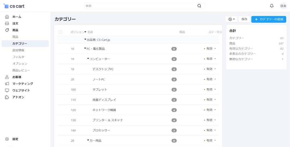 カテゴリー一覧からカテゴリーの追加や編集が可能です。