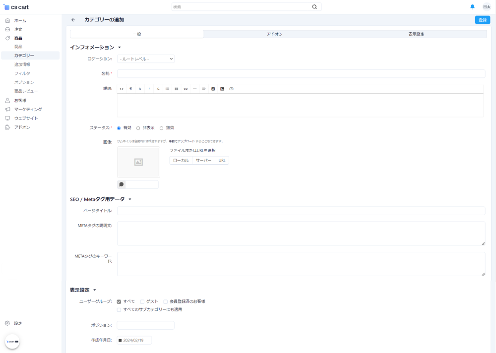 | 作成年月日 | カテゴリーの作成年月日を指定 |