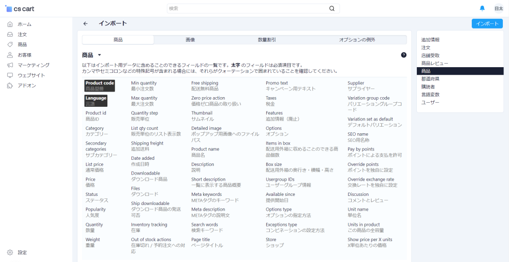 CSVファイルを介してCS-Cartにデータをインポートすることができます。