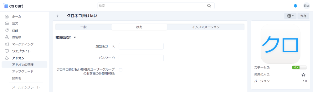 アドオン → アドオンの管理 にアクセスし、 クロネコ掛け払い をインストールします。