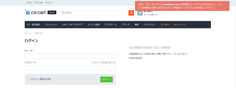 - IPアドレス…ショップへのアクセスを拒否するIPアドレスを範囲指定します。