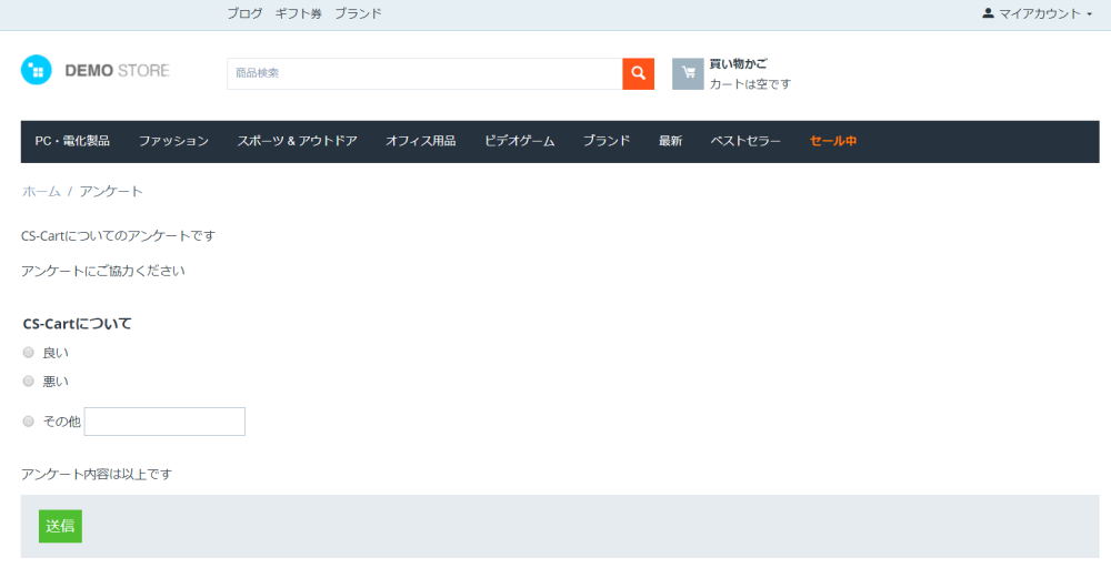 アンケートアドオンは、ショップフロントにおいて、お客様にアンケート(投票)機能を提供します。