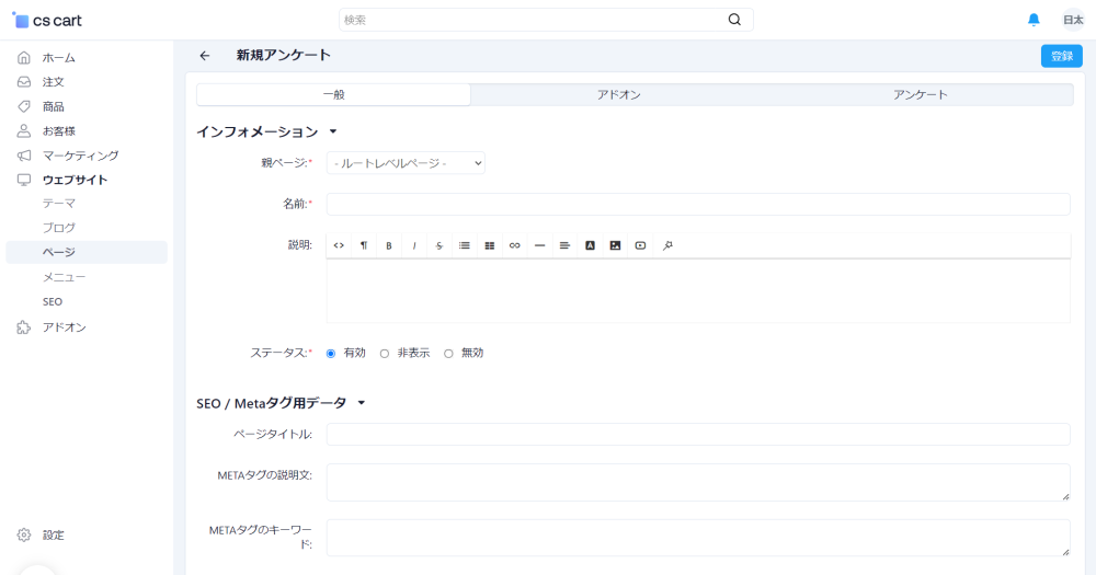 ここで「登録」ボタンをクリックして一旦ページを登録します。