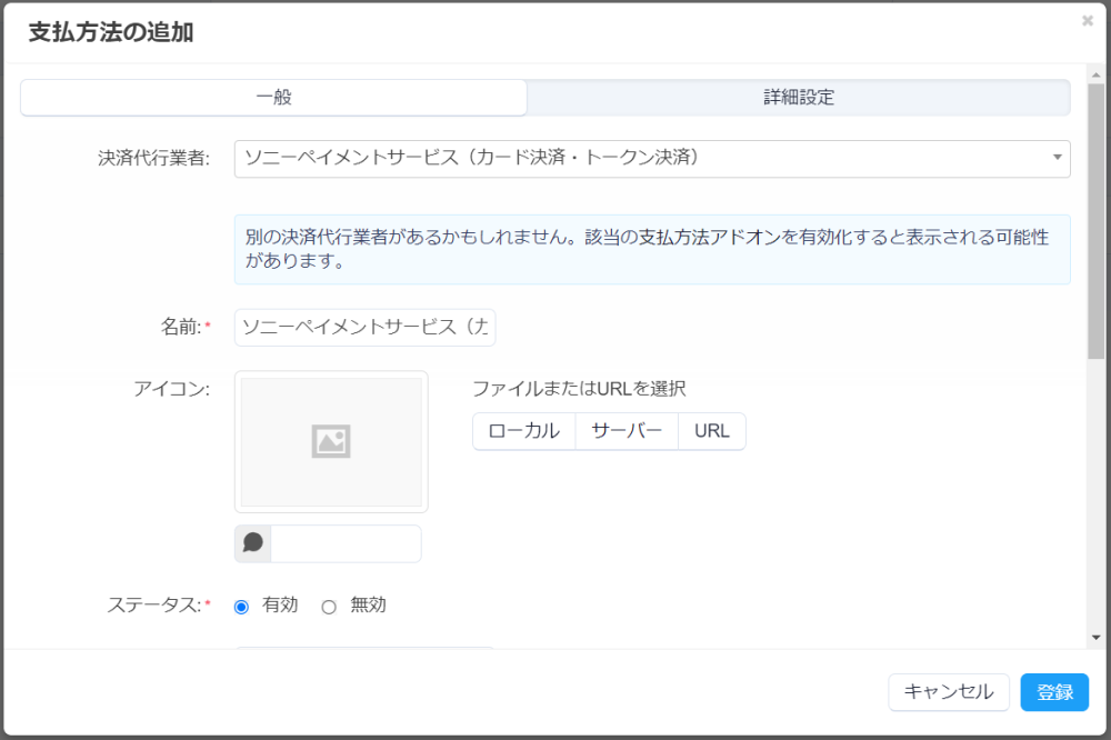 決済代行業者に下記を設定してある支払方法における詳細設定タブにおいて、
