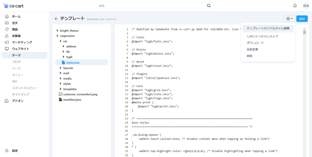 サーバー上のテンプレートをブラウザ上で直接編集できます。