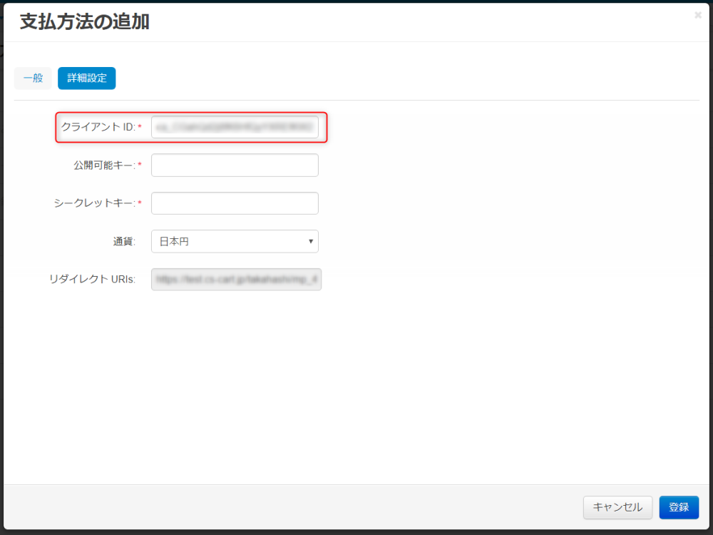5.コピーしたクライアント ID を CS-Cart上でStripe Connect 決済の支払方法にある詳細設定に貼り付けてください。
